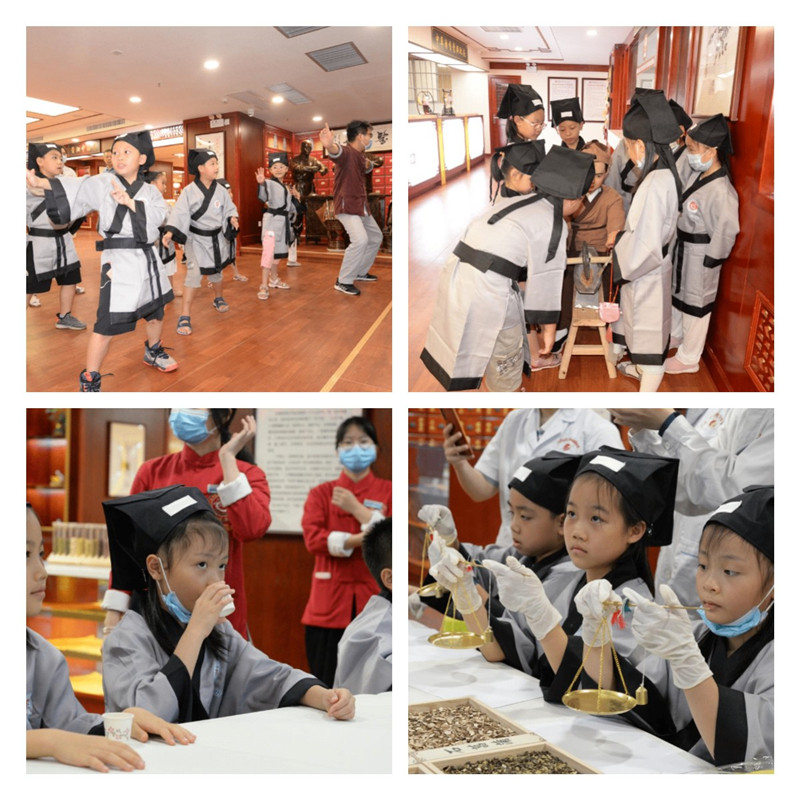 近日,10名小朋友带着十万个为什么化身小药童来到了附属瑞康医院中医药博物馆,跟着老中医学习号脉、走进药房认识药材……在家长和药师的带领下,小小药童们的探秘神奇的中药之旅开始了!当天,小朋友们换上呆萌的药童装,跟随附属瑞康医院中医药博物馆的药师,认真聆听药师讲解摆设着的各类药材的作用、聆听中医文化、李时珍的故事,走进精品中药房、贵细中药房,近距离观察中草药标本、医药模型、雕像、古医书、皮毛动物标本,走进农本方中药房、免煎中药房,感受中医药的现代发展。