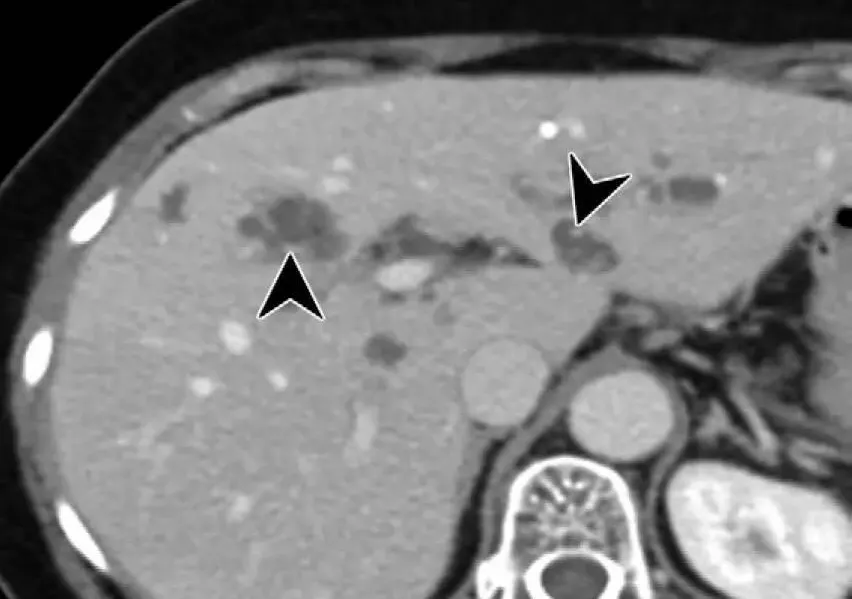CT检查提示,患者肝内胆管絮状影,考虑为肝吸虫感染