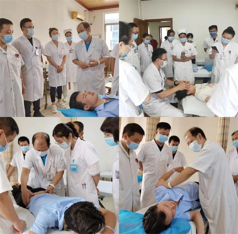 黄锦军名中医团与桂平市中医医院医护工作人员一起进行教学查房、病案分析及操作治疗。
