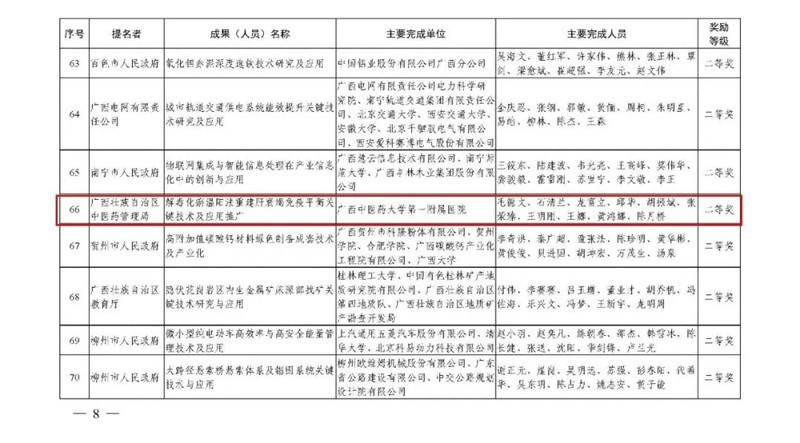 【喜讯】一附院毛德文教授团队荣获2020年度广西科技进步奖二等奖