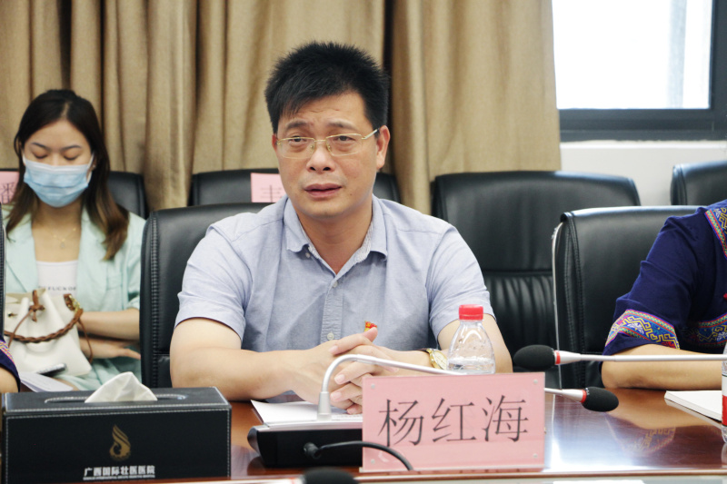 杨红海介绍了武鸣区中医医院的发展情况,他希望此行能够借鉴国壮先进的医院管理和医院文化建设经验,特别是壮医药民族医药的文化建设,助推医院向上发展。