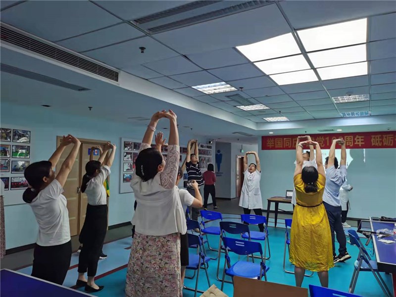 一附院康复科苏晗医生在健康小课堂上带领职工做健身操