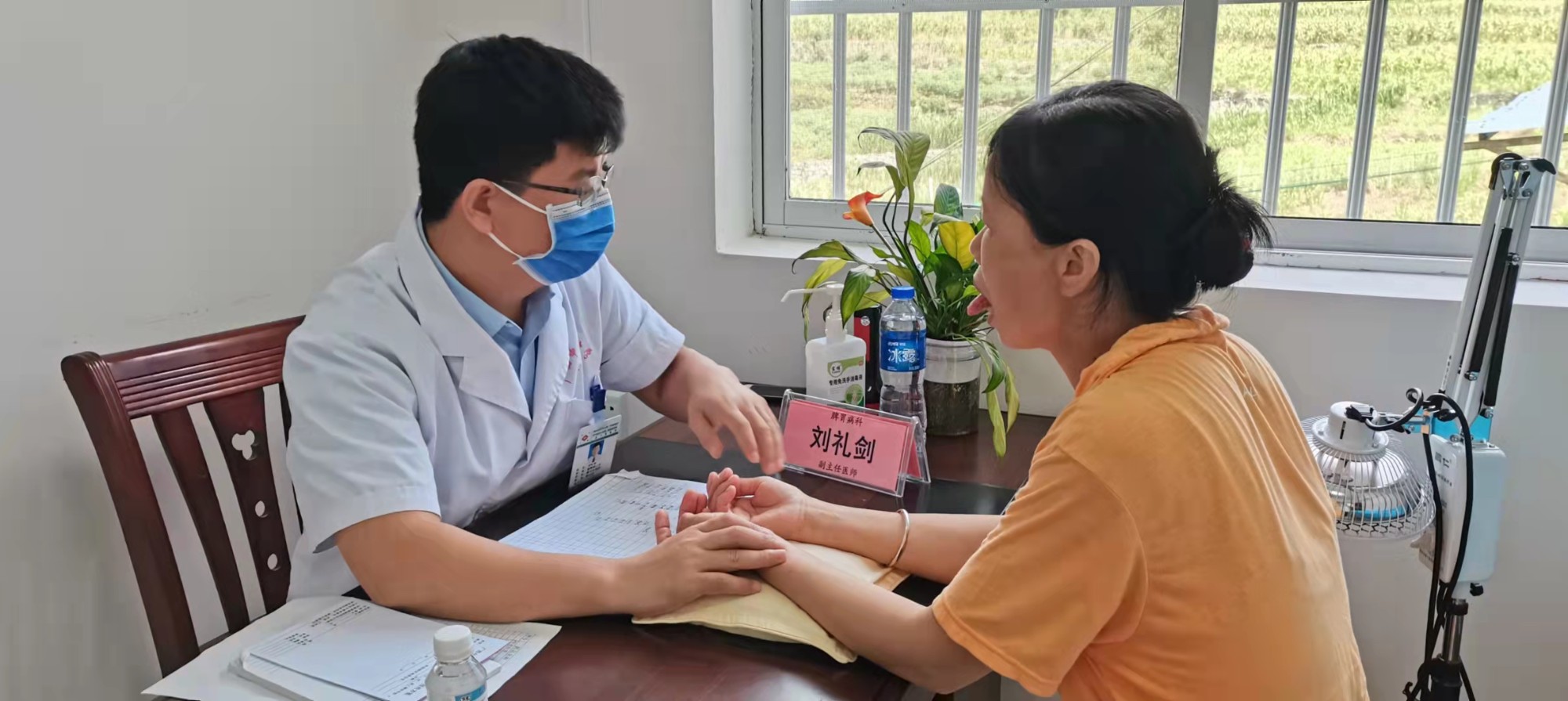 一附院专家脾胃病科二区副主任刘礼剑在为村民把脉诊病