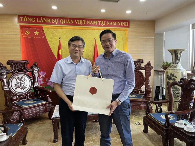 今年8月底,越南社会主义共和国驻南宁总领事馆总领事杜南忠到一附院访问交流。为进一步加强一附院与越南在中医药卫生健康领域的合作与交流,9月30日下午,一附院院长谢胜在科研部、中医治未病中心等相关负责人陪同下,到越南社会主义共和国驻南宁总领事馆回访杜南忠总领事。