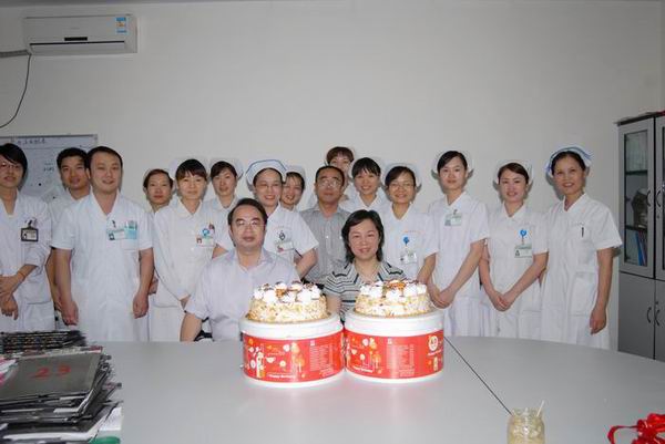 医院黄贵华院长、李敏智书记送上节日的蛋糕和祝福
