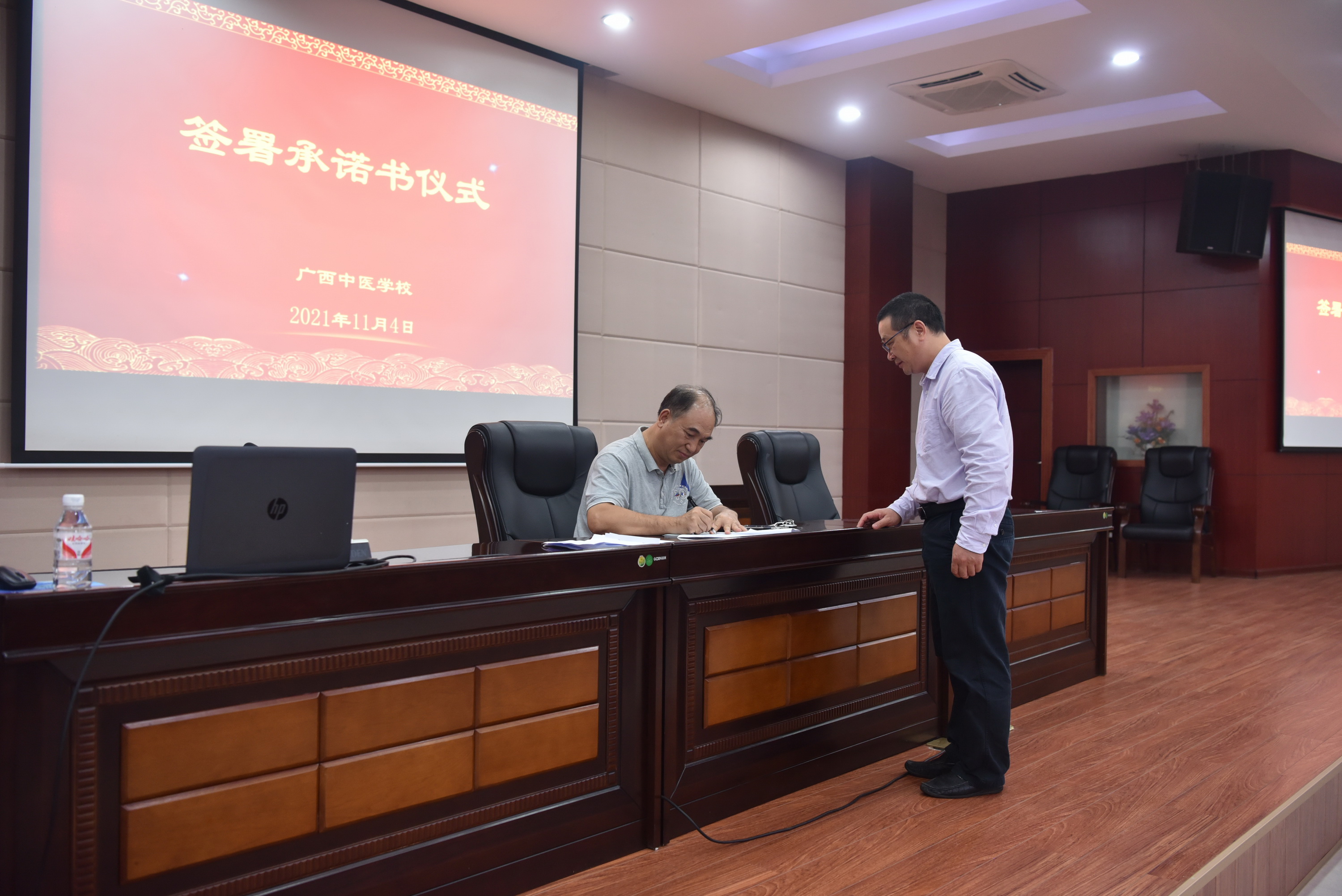 接着,各行政部门和专业部与校长签署诊改复核工作承诺书。
