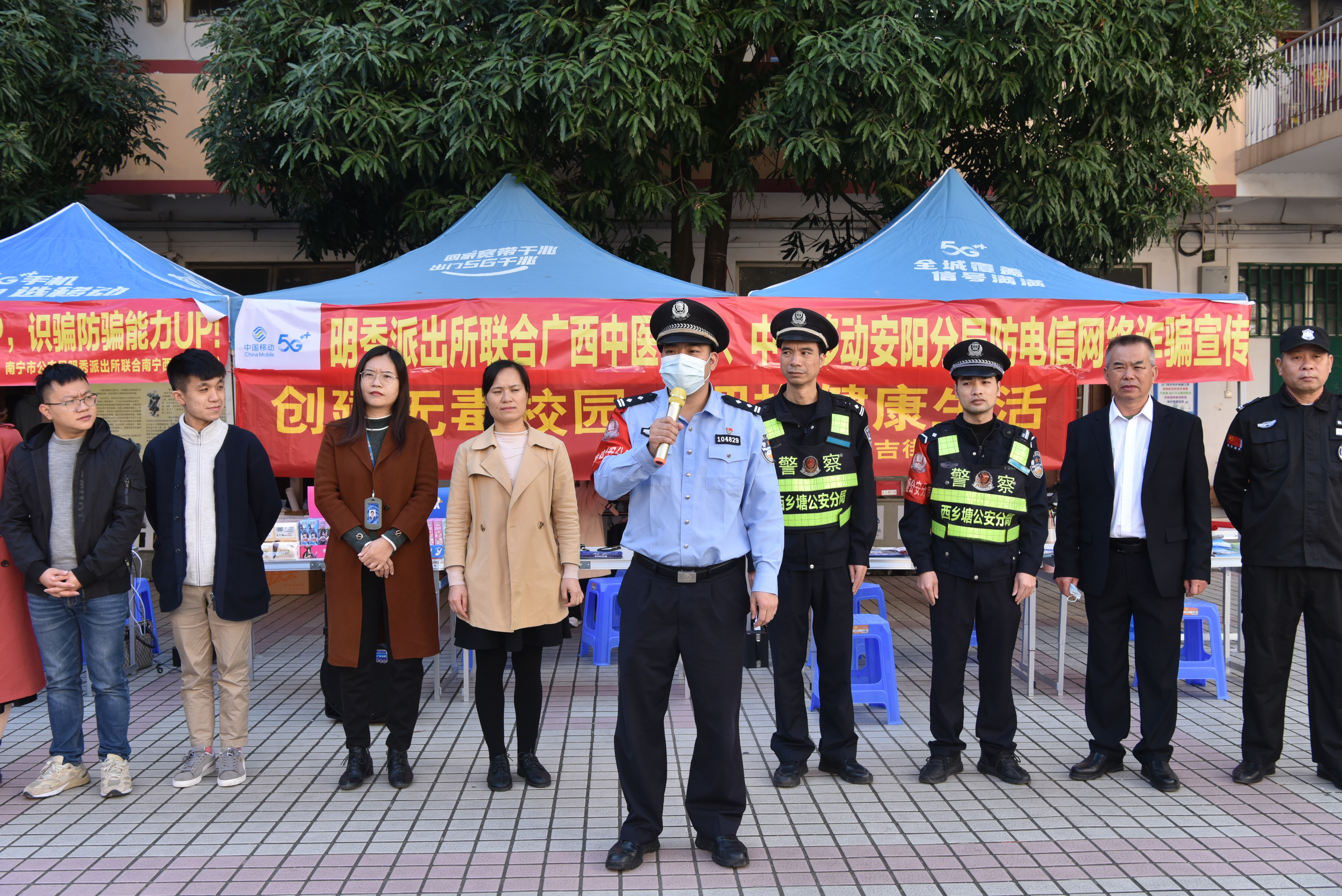 为了普及防电信网络诈骗知识,让在校学生懂得诈骗的手段和骗局。11月9日上午,南宁市明秀派出所联合中国移动到星空彩票老版本下载附设中医学校开展“防范电信网络诈骗,提升学生防范意识”主题宣传活动。