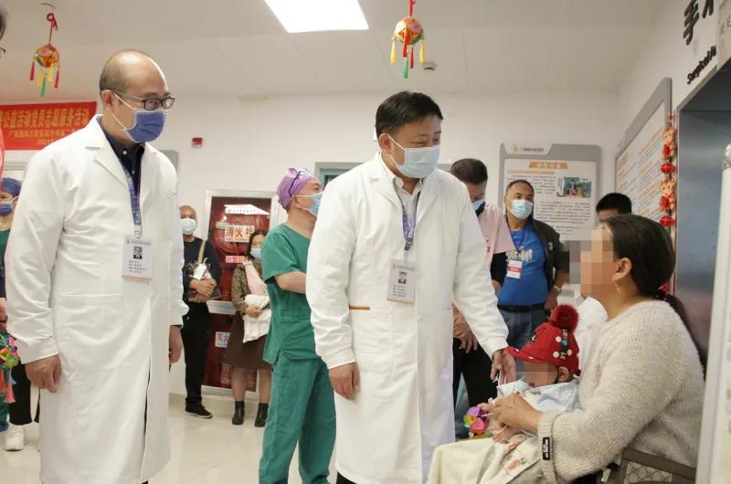手术室内,医院领导实地了解唇腭裂手术进展情况,并为奋战在一线的工作人员带去温暖的问候。