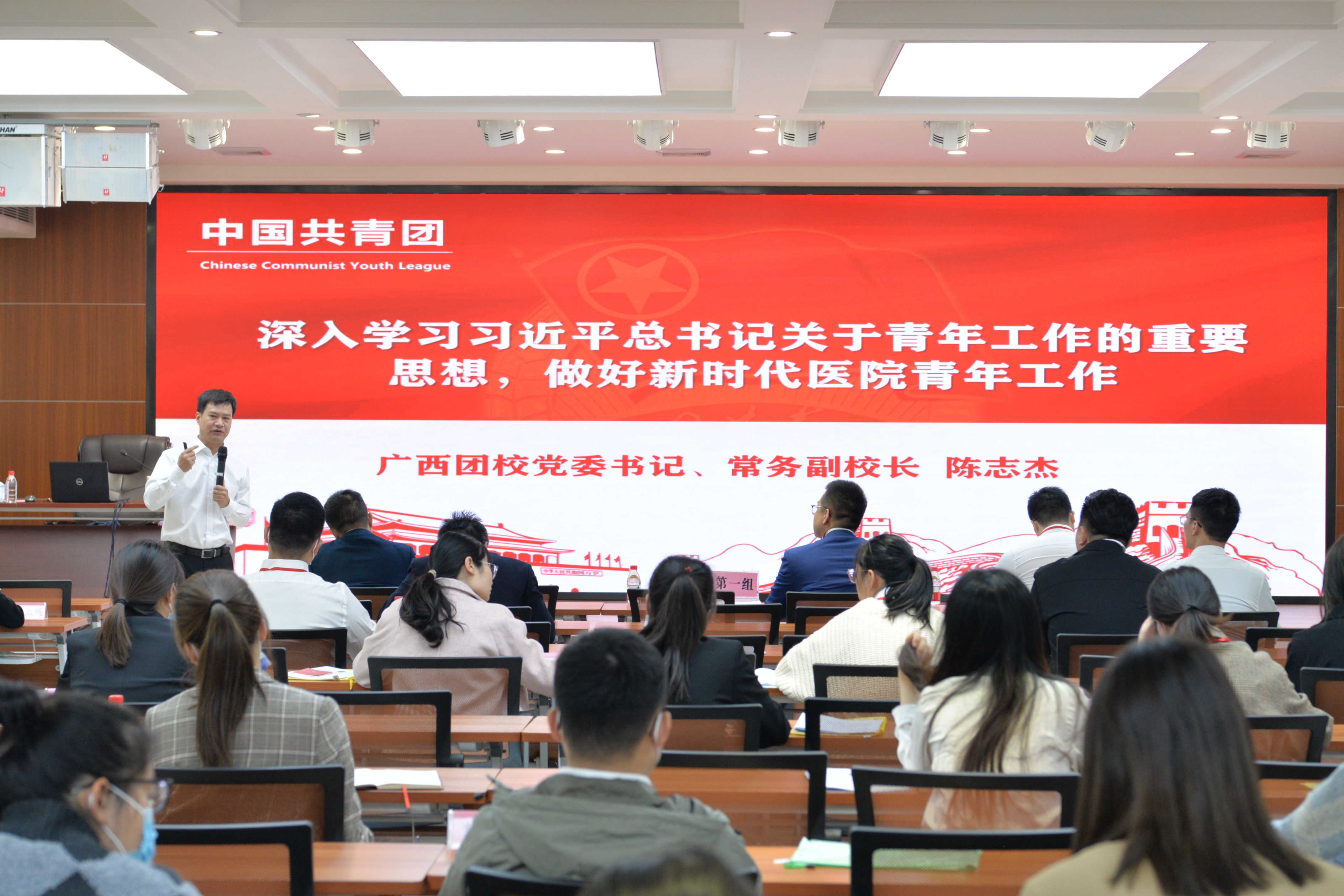 11月12日,附属国际壮医医院“学党史 强信念 跟党走”学习教育暨2021年团干部、青年骨干培训班在广西团校开班,60名团干部及青年骨干参加培训。附属国际壮医医院党委书记秦祖杰,广西团校党委书记、常务副校长陈志杰,附属国际壮医医院党委副书记吴光出席开班仪式。