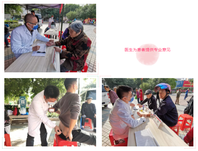 义诊现场,专家为患者分析病因,解决疾病疑虑,告知诊疗方案,提供就诊意见,还为群众带来了针灸治疗免费体检服务,受到了现场群众的一致好评。