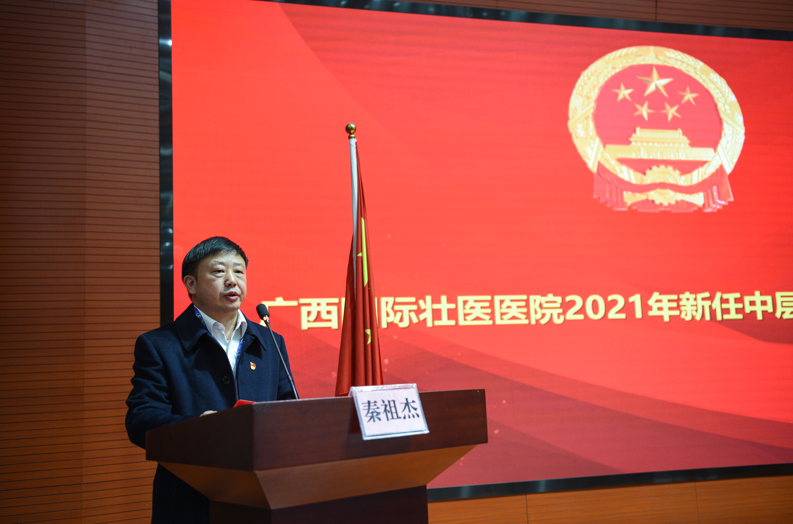 12月7日下午,附属国际壮医医院举行2021年新任干部宪法宣誓仪式。医院党委书记秦祖杰担任监誓人,党委副书记吴光主持。20名今年以来新任职的中层干部组成宣誓队伍进行宣誓,在家领导、中层干部观摩宣誓仪式。