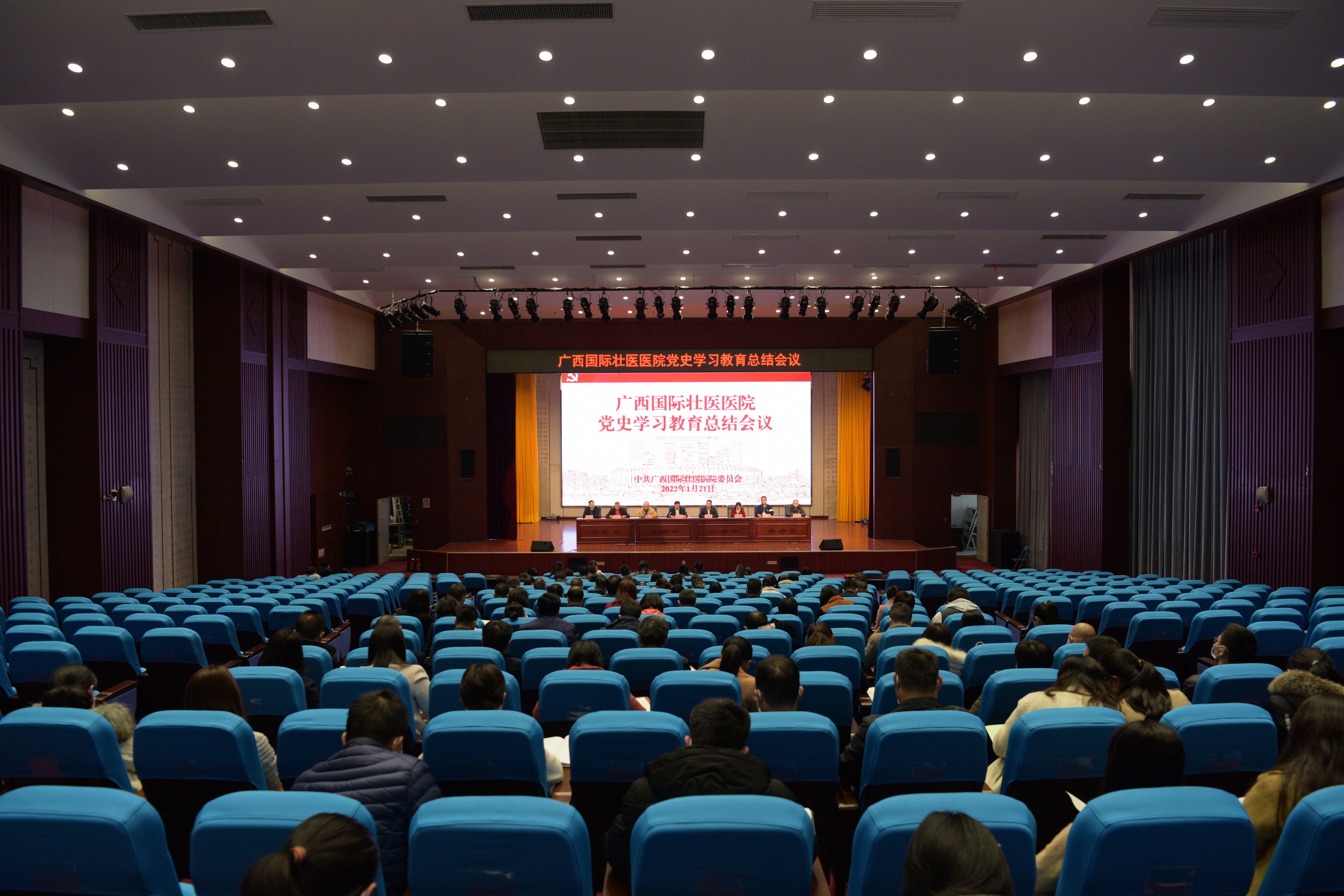 1月21日下午,广西国际壮医医院召开党史学习教育总结会议,深入学习贯彻习近平总书记重要指示精神和党史学习教育总结会议精神,总结医院党史学习教育开展情况,对巩固拓展党史学习教育成果作出部署。院党委书记秦祖杰作总结讲话。医院全体院领导、中层干部、党总支书记及委员、党支部书记及委员等近300余人参加会议。会议由院党委副书记吴光主持。