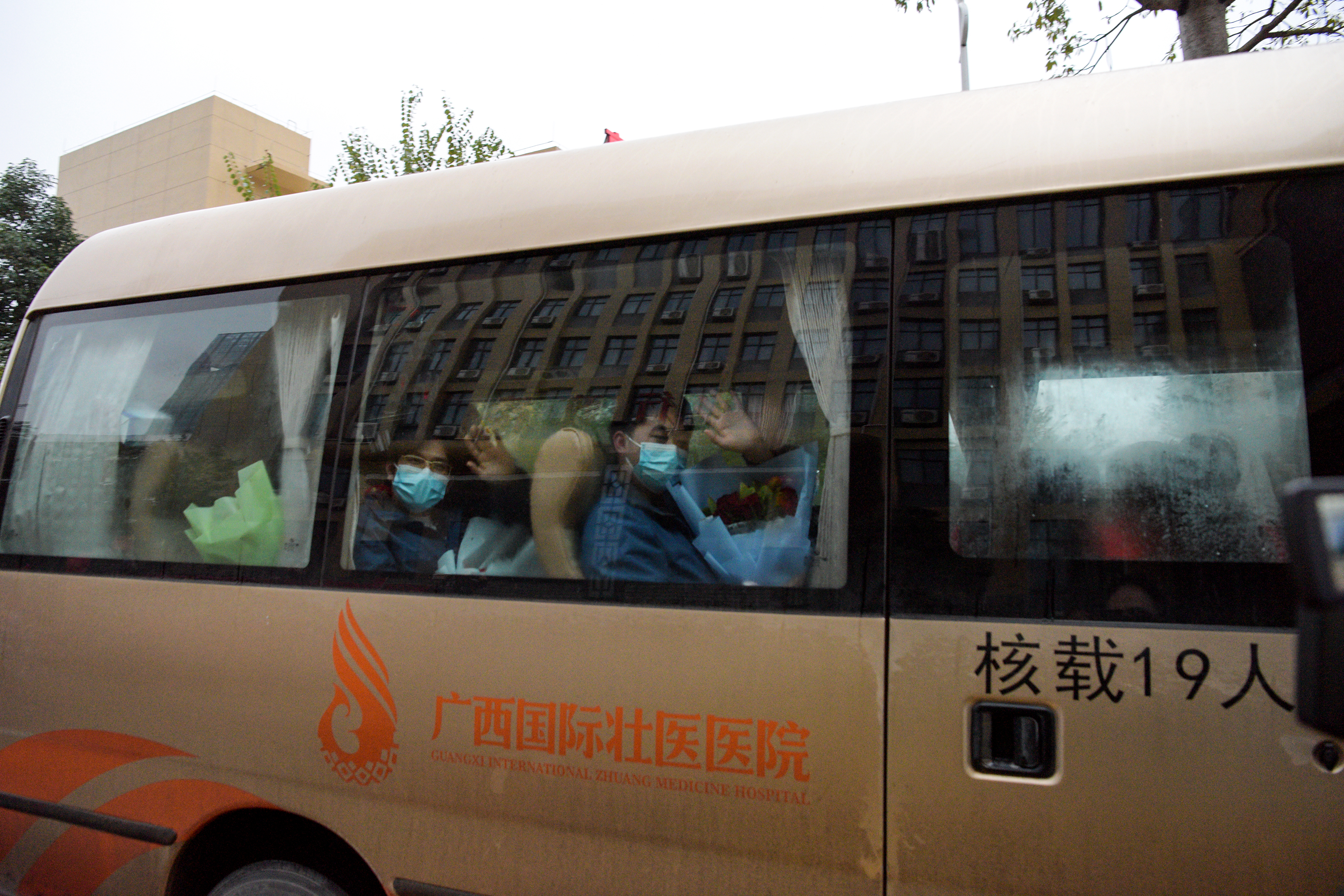 附属国际壮医医院移动核酸检测车检测支援队凯旋