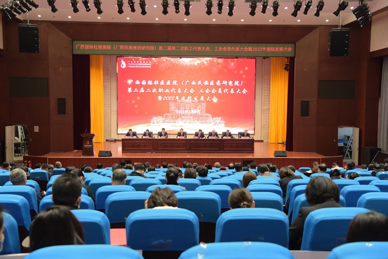 凝聚奋斗力量,绘就发展蓝图。3月6日,附属国际壮医医院(广西民族医药研究院)第二届第二次职工代表大会、第二届第二次工会会员代表大会暨2022年医院发展大会顺利召开。会议审议通过了7个工作报告和1个中心议题,表彰了一批先进集体和个人,全面总结了医院2021年的各项工作,科学部署了2022年的重点工作,为加快医院高质量发展指明方向路径。