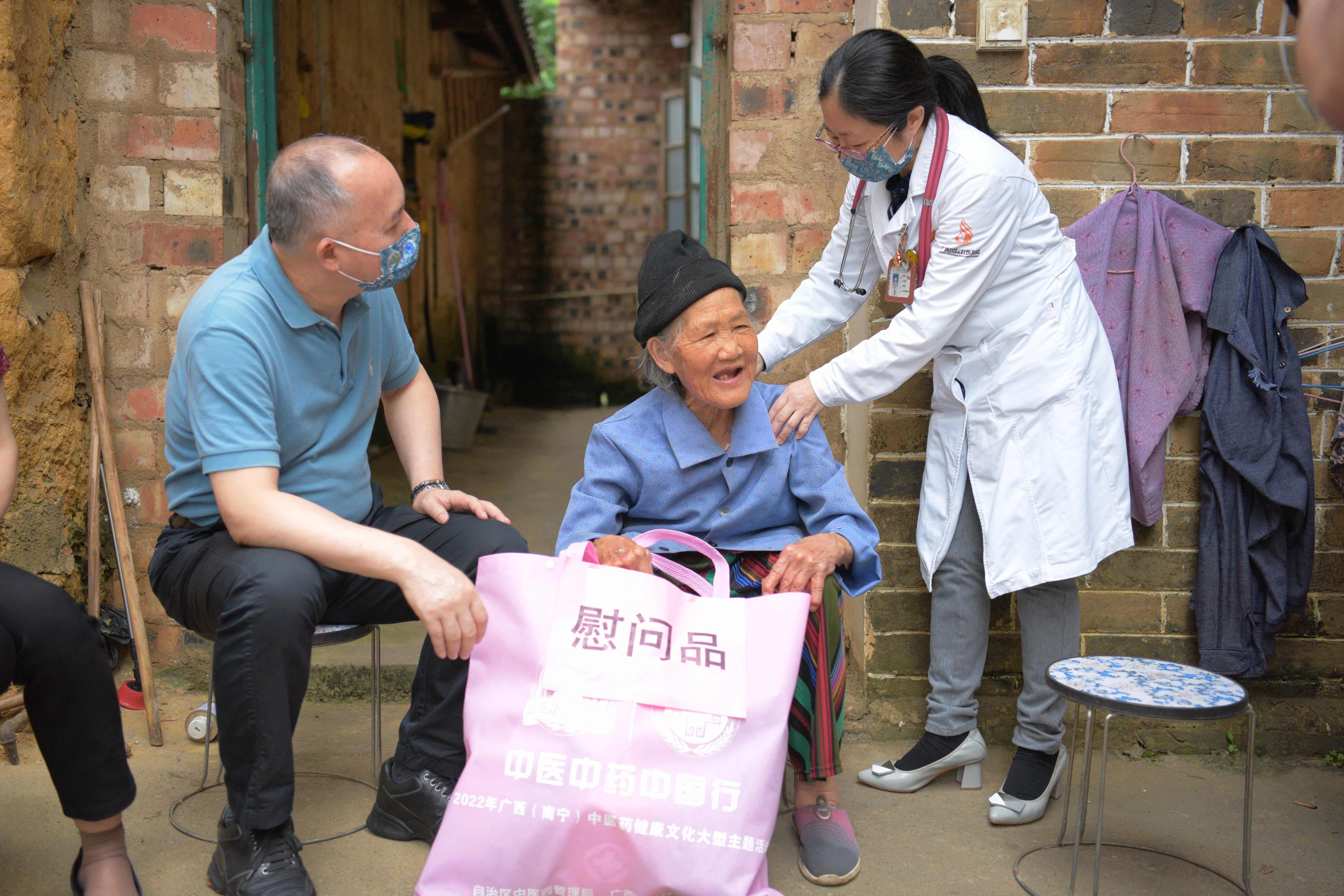除了能在家门口享受到优质医疗服务,一些年纪大、行动不便的群众也享受了中医药上门服务。“阿婆,您多大了?身体怎么样?”“哪里不舒服?让专家给您看一下。”“我们给您带来了壮医药膏,还有武打将军酒,您要坚持用。”活动当天,黎甲文带领广西国际壮医医院疼痛科、风湿病科、康复科的专家走进困难户家中,详细了解她们的健康状况,入户专家还为她们进行细致的身体检查并提出了专业的指导意见。