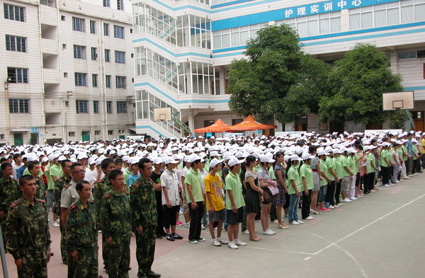 2010年8月16日上午10点,广西中医学校2010级新生军训动员大会在学校北湖校区篮球场隆重举行。南宁市兴宁区武装部参谋周文珍,广西中医学校党委书记岑家铭、校长吴彬、党委副书记罗艺徽及相关部门负责同志、军训教官和学校2010级新生参加了动员大会。