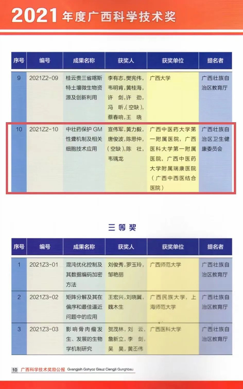 附属瑞康医院2项科研成果获广西科学技术奖