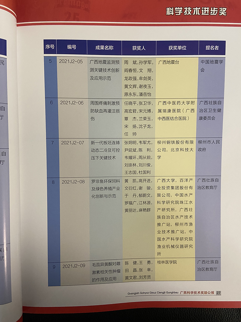 据悉,2021年度广西科学技术奖共评选出162项。其中,广西最高科学技术奖1项,青年科技杰出贡献奖2项,自然科学奖24项,技术发明奖24项,科学技术进步奖106项,科学技术合作奖2项,企业科技创新奖3项。