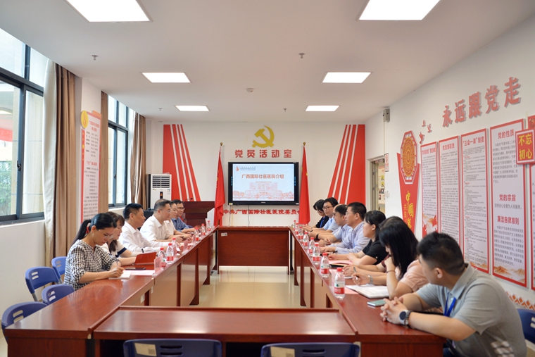 5月25日上午,宾阳县中医医院党委书记李受南、院长廖继文、纪委书记何晓英一行6人到附属国际壮医医院参观学习并座谈交流。医院党委书记秦祖杰、院长岳桂华、党委副书记吴光及相关职能部门负责人陪同。