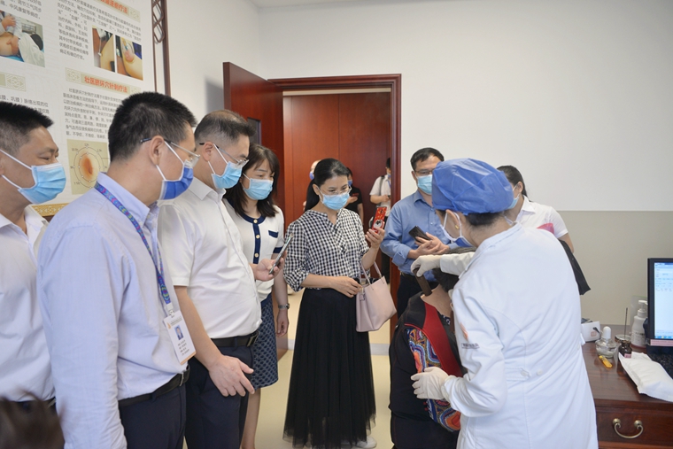 座谈会前,李受南一行先后参观了医院布洛陀广场、民族特色诊疗一区、文化长廊、治未病中心、空中花园、教学实训中心和党员活动室,并现场观摩壮医药物竹罐疗法演示。