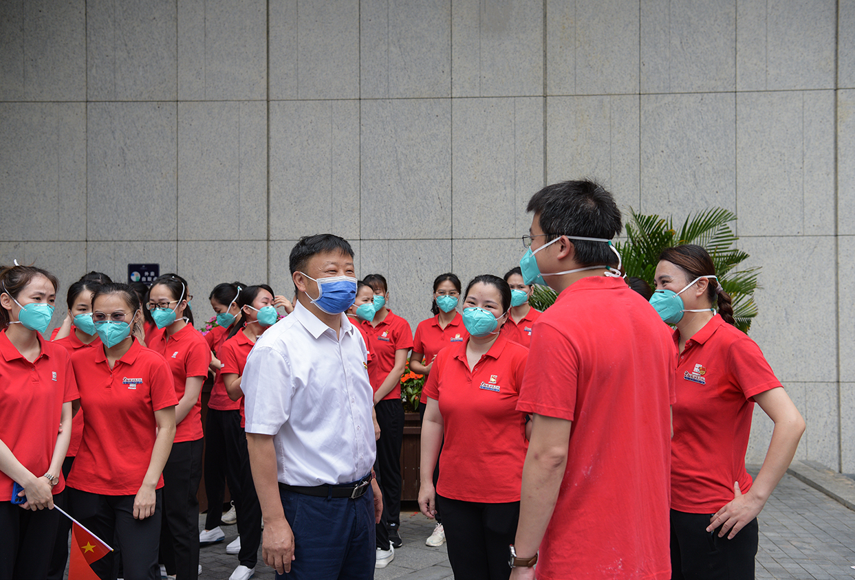 “大家辛苦了!”队员中转间隙,千言万语都凝结在这屡见叠出、脱口而出的五个字中。医院党委书记秦祖杰,院长岳桂华及其他在家领导班子成员、干部职工、队员家属,在有限的时间内看望慰问62名队员,向他们艰辛的付出表示感谢。