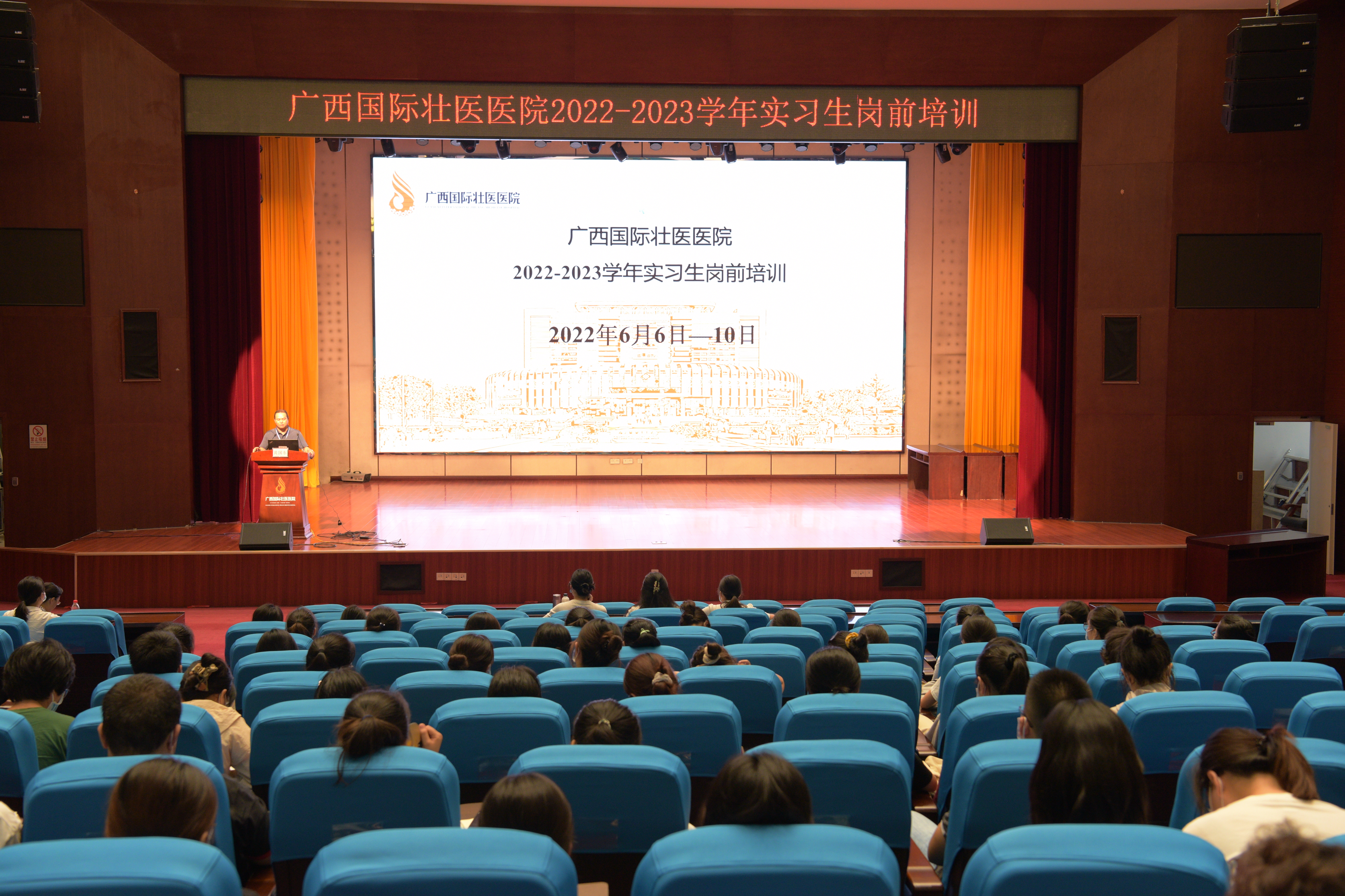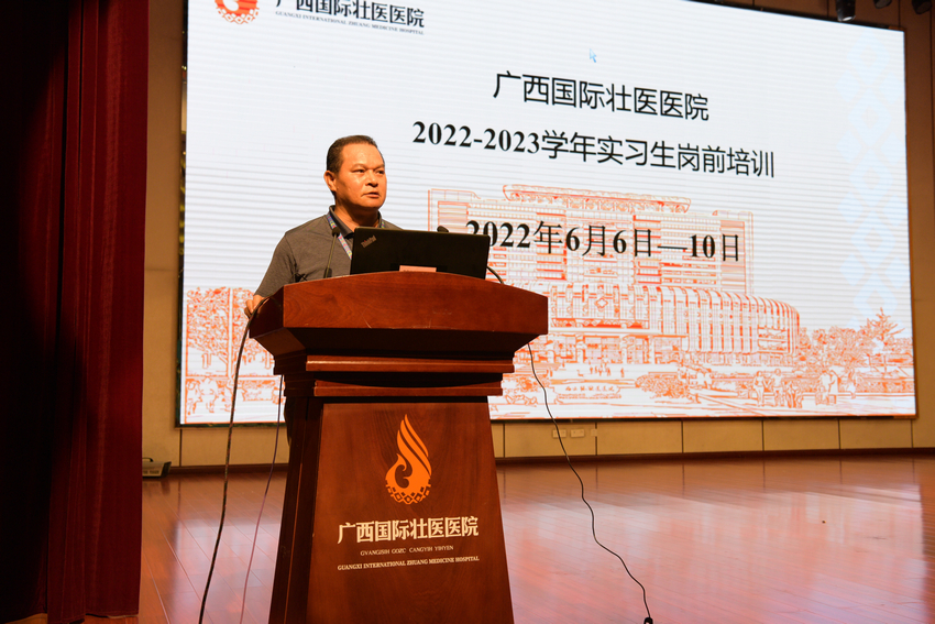 6月6日,附属国际壮医医院院举办2022-2023学年实习生岗前培训班,医院党委书记秦祖杰出席开班仪式并讲话。
