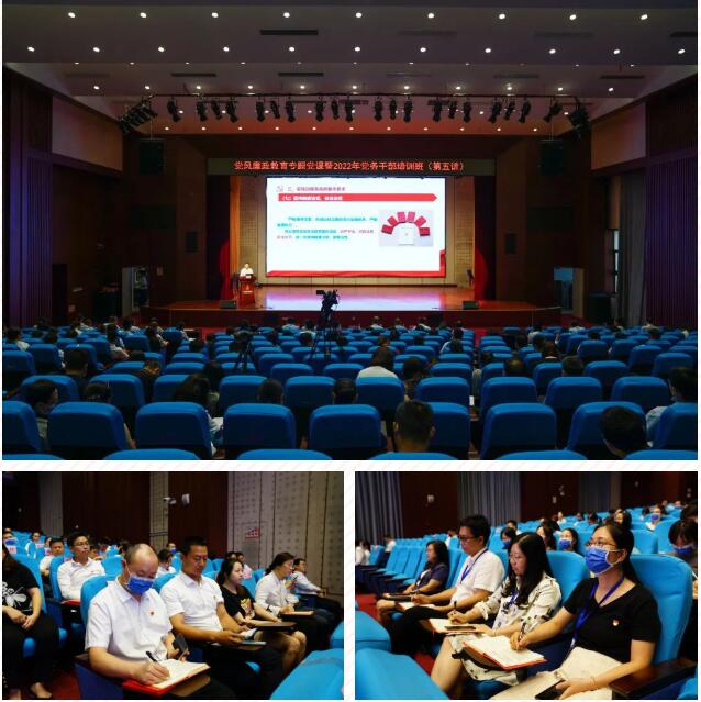 6月30日,附属国际壮医医院举行党风廉政教育专题党课暨2022年党务干部培训班(第五讲),医院党委书记秦祖杰上《坚持自我革命,涵养清廉生态,为推动医院高质量发展提供坚强保障》的专题党课。