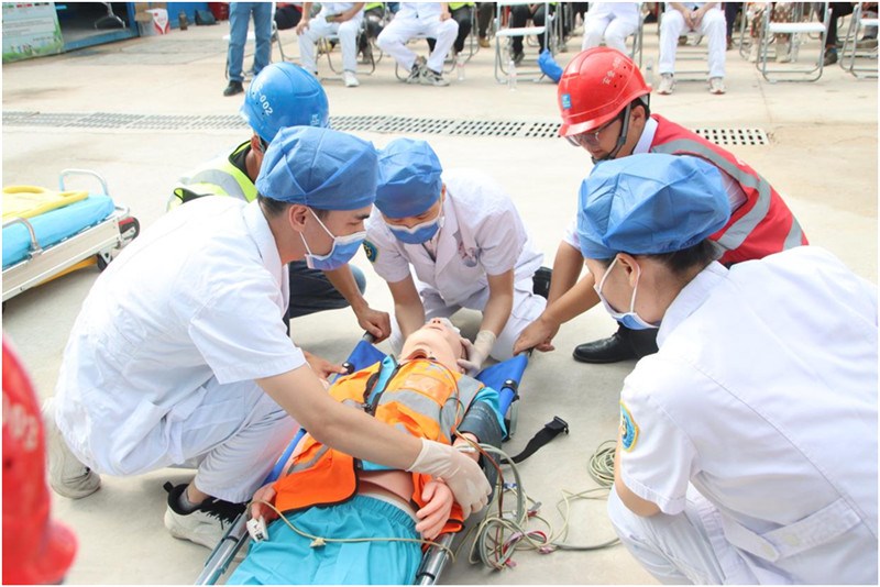 6月30日上午,一附院仙葫院区急诊科医疗团队赶赴中建五局承建的凤岭南苑二期公共租赁住房项目部,现场观看驻地医疗队的应急救援演练后,通过点评、讲解方式进行应急救援知识的指导、培训;急诊外科医师冯思华现场讲解关于高处坠落伤的救治注意事项,包含环境安全的评估,创伤出血止血包扎,止血带的正确使用,四肢骨折固定、脊柱损伤固定、搬运及避免二次损伤等相关应急措施;通过本次指导与培训,现场人员对高处坠落伤的应急处置有了全新的认识,同时也得到了中建五局全体员工的认可与支持。刘长栋安全总监说:通过本次交流、学习,公司的应急救援能力得到了有效提升。同时也加强了当地医疗与建筑施工单位的友好合作。