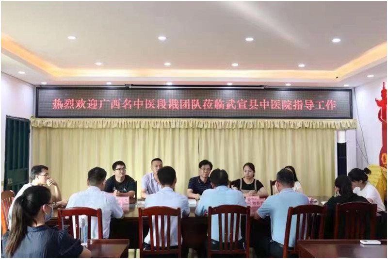 为认真落实《自治区中医药局办公室关于下达2022年广西名中医工作站建设项目的通知》文件要求,强化责任意识,扎实推进项目实施;为开展跟师学习、交流培训等创造必要条件,结合武宣县中医院现有基础,先期落实名中医工作站的场地建设;并为充分传承名中医诊疗技术和学术思想,拔高基层医院自身能力水平,以及积极开展中医药文化宣传,营造良好文化氛围,提升名中医团队到站服务活动的影响力,积极展示项目的惠民成效, 7月18-19日,广西名中医段戡团队一行9人来到广西来宾市武宣县中医院,开展“名中医工作站”建设项目活动,并结合业务实际为基层医院办实事。