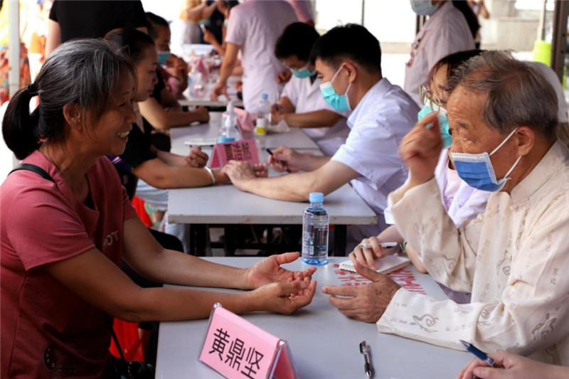 2021年,黄鼎坚名中医团队到东兰开展“广西名中医八桂行”活动,黄鼎坚现场为群众看诊