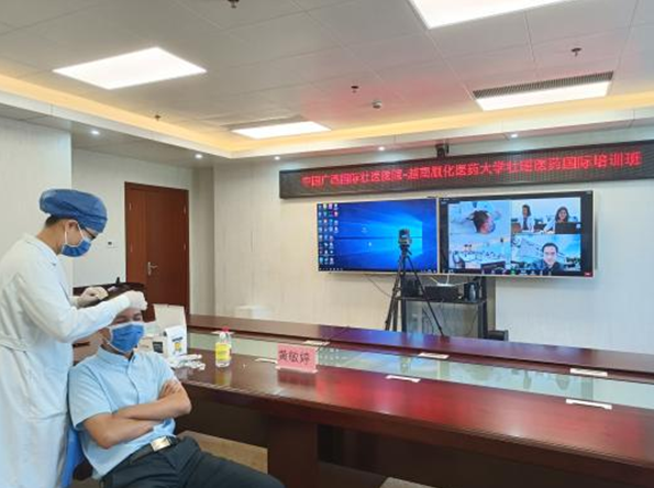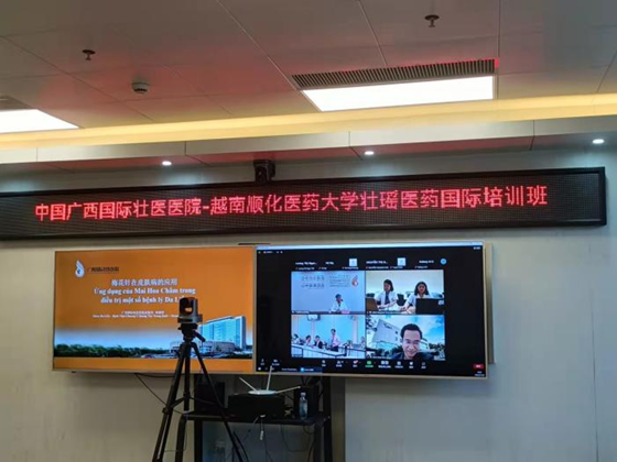 7月25日上午,中国广西国际壮医医院—越南顺化医药大学壮瑶医药国际培训班线上培训活动在广西国际壮医医院国际远程会诊中心举行。
