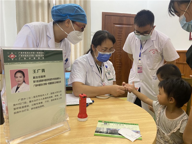 值此医师节即将到来之际,一附院王力宁名中医团队及特邀国际壮医医院儿科甘娜主任等一行4人,继续发挥中西医协同创新,把中医理念带入西医医院,于2022年8月3-4日到对口指导单位宾阳县妇幼保健院开展广西“名中医八桂行”系列活动。