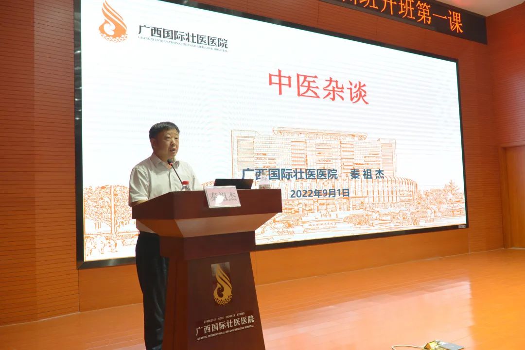 9月1日下午,附属国际壮医医院两年制“西学中”培训班开班第一课开讲,医院党委书记秦祖杰以《中医杂谈》为题为学员上了生动的一课。来自西医临床、医学检测和影像专业的30名学员参加。