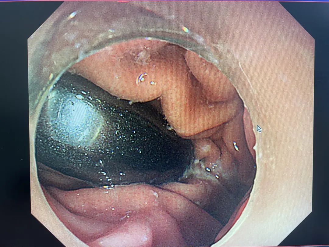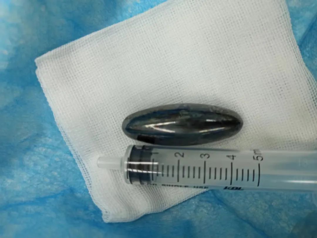 前来会诊的脾胃肝病科一区副主任医师刘伟锋评估发现,小明吞下的异物为椭圆形的金属磁铁玩具,重量比寻常异物重上许多,很容易导致胃肠道梗阻或穿孔。此外,在胃肠道蠕动反应下,异物将继续下滑,若进入曲折、窄小的小肠,发生梗阻的几率将进一步增大,取出难度也会直线上升,因此必须立即将其取出。