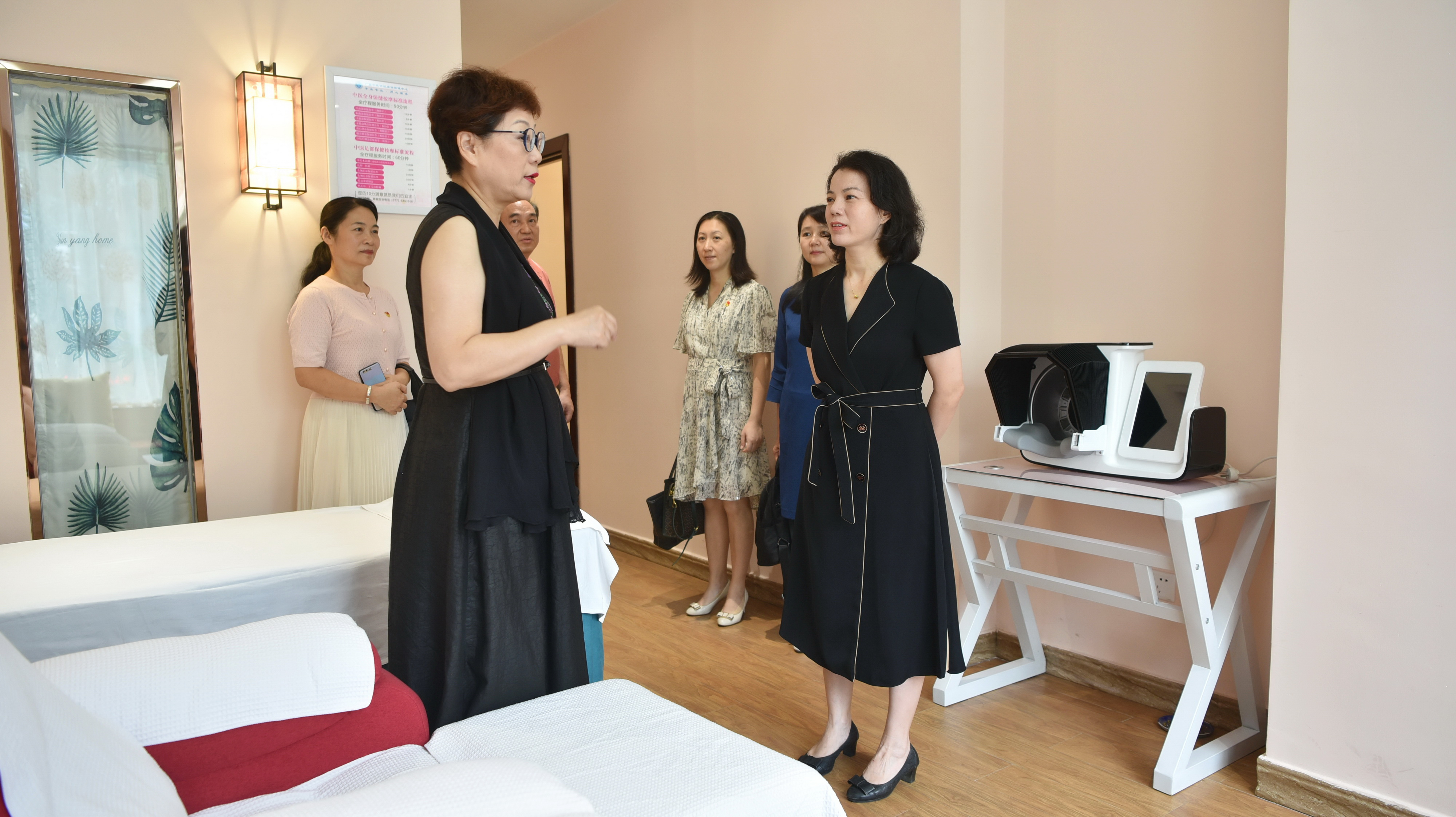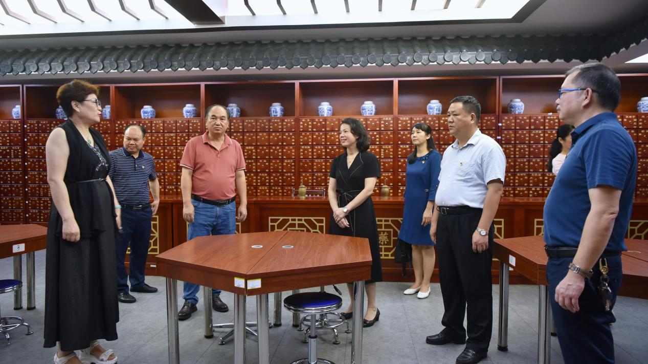 调研中,覃宇环一行实地走访了东葛校区康体保健中心、中医药文化养生药膳馆、药剂实训中心等地。通过现场调研了解院(校)校办产业发展情况、产教融合办学特色和亮点等。