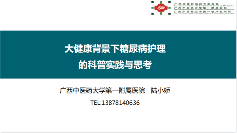 科普作为一种群众性的普及教育活动,它的群体涉及的面很广,护理部副主任苏宇虹以“面对不同受众,如何“科普”更有效”为题,讲授面对学生、工人、农民、军警、公务员等不同职业群体的特性、兴趣、需求,结合一附院近年来开展的科普工作实际情况,介绍科普工作实施策略。内分泌科护士长陆小娇讲解了健康背景下糖尿病护理的科普实践与思考,从源行动、在行动、专科取得的科普成果等方面分享了科普心得。