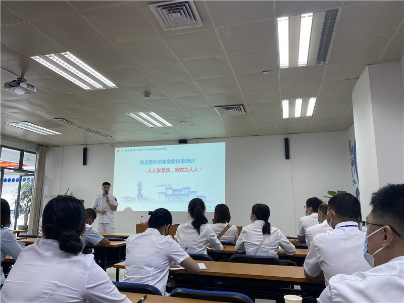 为迎接党的二十大胜利召开,庆祝一附院建院80周年,积极响应2022年全国科普日活动的号召,落实《“健康中国2030”规划纲要》,坚持健康优先、科学发展的原则,提高人民健康水平为核心,以普及健康生活、优化健康服务、完善健康保障为重点,一附院仙葫院区党总支第一党支部以此为契机,于9月21日上午在南宁轨道地产物业开展“培训赋能、温暖守护-家庭急救护理专题培训”的急救科普活动。