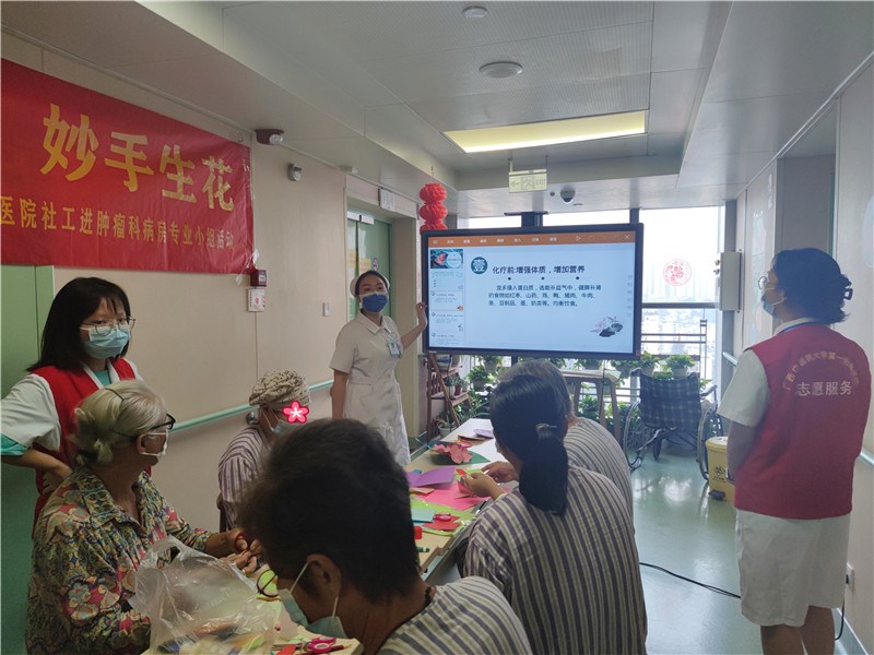 一附院团委、社工部开展“指韵留尖,妙手生花”社工进肿瘤科病房专业小组活动第二节“纸上添花”手工坊