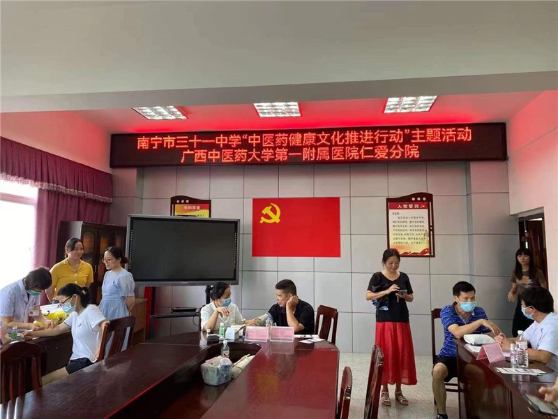 一附院受南宁市三十一中、南宁市公安局良庆分局的邀请,于9月29日上午与下午由外联拓展部组织仁爱分院治未病科、中医内科、瑶医科、乳腺科与针灸科人员,前往南宁市三十一中,对该小区的居民,开展健康义诊活动;组织东葛院区治未病中心、康复科、心胸外科前往良庆公安分局分上下午开展义诊活动