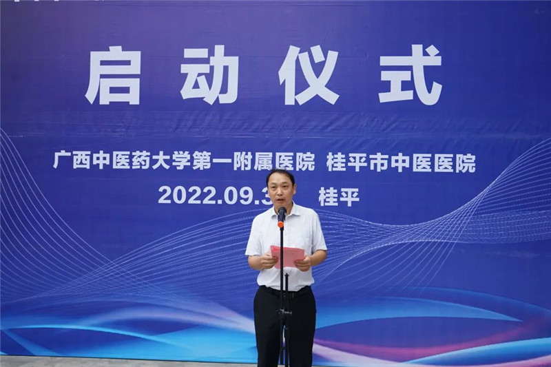 30日上午,活动启动仪式在桂平市中医医院1号楼门前广场正式举行。桂平市卫生健康局副局长杨镒全,一附院院长谢胜,副院长、仙葫院区院长张高炼,桂平市中医医院院长伦庆义、党委书记何荣培,一附院专家团队及桂平市中医医院领导班子、中层干部等参加启动仪式。