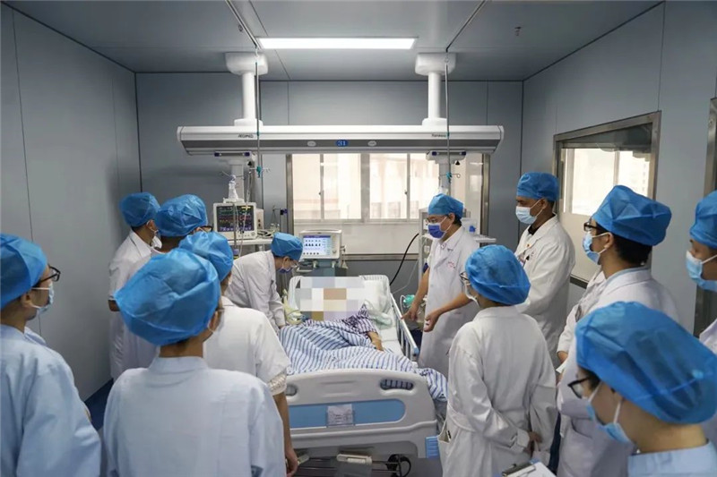 一附院院长谢胜与专家团队查看危重症患者,为患者详细制定中西医协同治疗方案