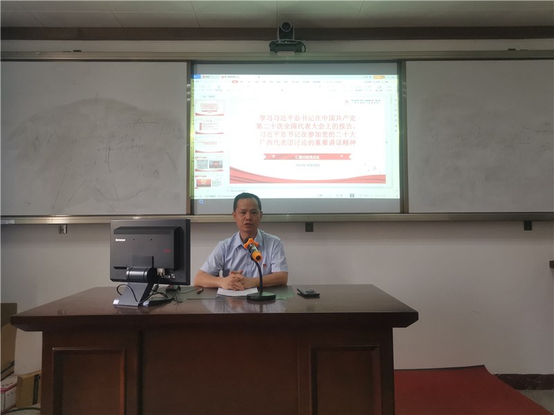 在专题党课中,一附院仁爱分院党总支负责人、院长钟勇领学了习近平总书记在中国共产党第二十次全国代表大会上的报告、习近平总书记在参加党的二十大广西代表团讨论的重要讲话精神,传达了一附院党委关于认真学习宣传贯彻党的二十大精神的工作要求。他指出,按照一附院党委的整体部署,结合仁爱分院实际,一是始终把党的政治建设摆在首位,始终坚持党的领导,坚决捍卫“两个确立”,牢固树立“四个意识”、坚定“四个自信”、做到“两个维护”,自觉在思想上、政治上、行动上同以习近平同志为核心的党中央保持高度一致;二是坚持人民至上,按照一附院“一盘棋”的整体规划,仁爱分院要坚持促进中医药传承创新发展,持续优化中医诊疗服务,让人民群众的获得感成色更足、幸福感更可持续、安全感更有保障;三是全面履行监督执纪问责职能,推动作风建设、反腐败工作不断深入;四是以提高本领为基础,切实加强自身建设,用习近平新时代中国特色社会主义思想武装头脑,主动适应新时代党的建设新要求。