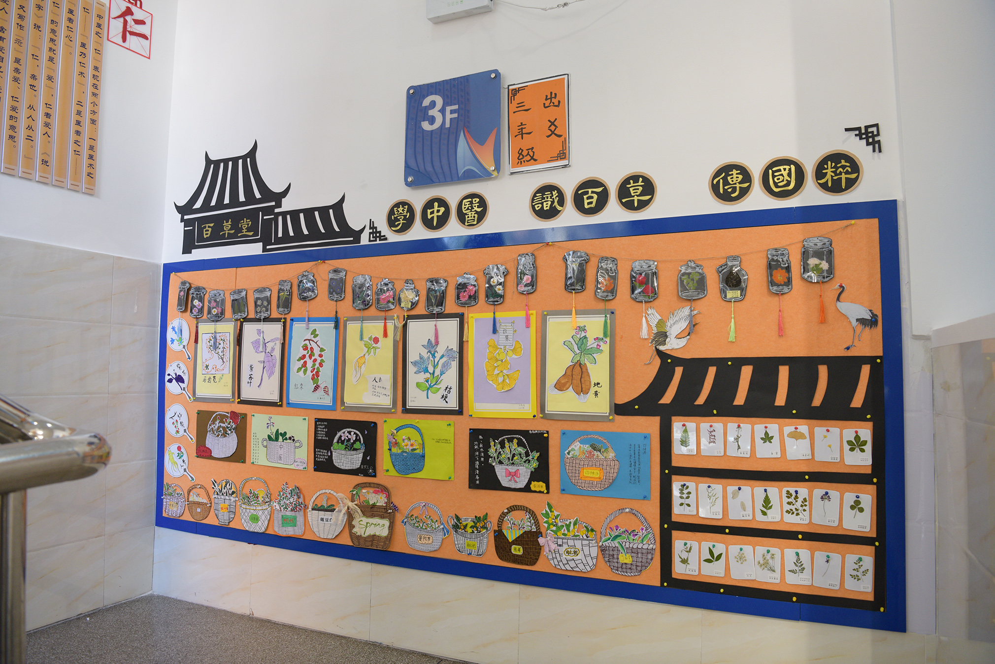 教学楼楼道内设有中医药文化角