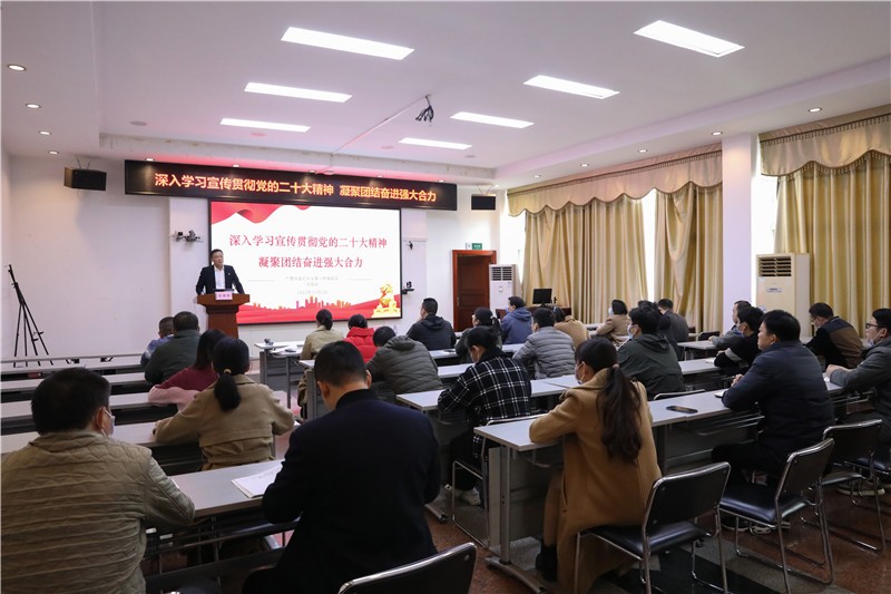 桂雄斌从大会基本情况、党的二十大报告概览、全面理解把握党的二十大报告阐明的新时代重大理论和实践问题、以实际行动把学习宣传贯彻党的二十大精神引向深入等4个方面,以深入浅出的语言及生动丰富的案例,全面系统地宣讲和解读了党的二十大精神。