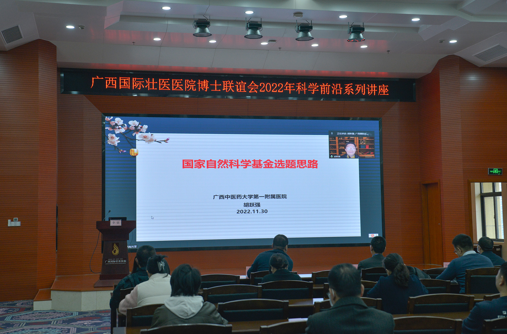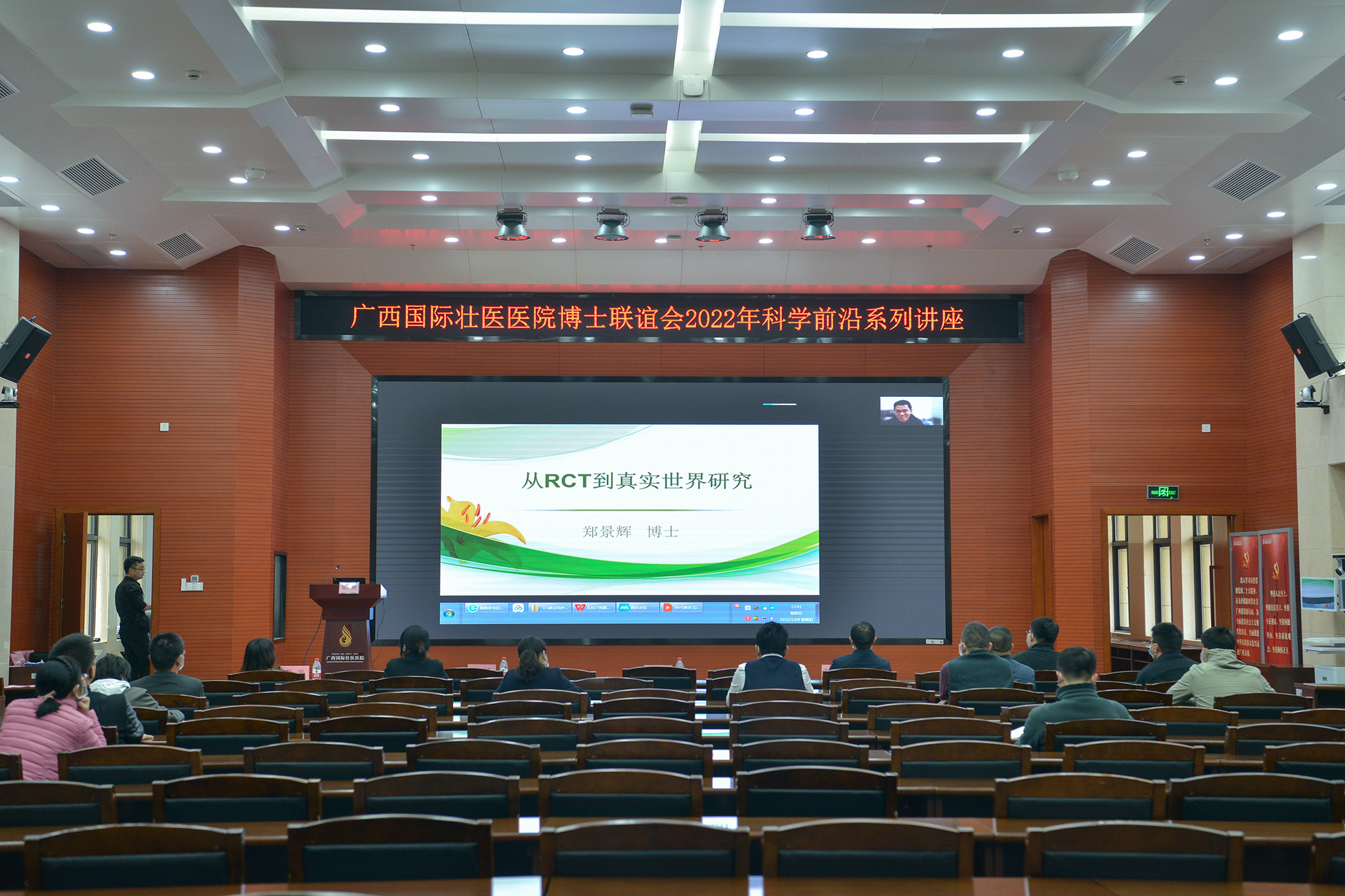 为进一步深入实施人才强院战略,推进医院人才队伍建设,推动医院高质量发展,12月9日,广西国际壮医医院举办博士联谊会科学前沿讲座,邀请星空彩票老版本下载学科建设办公室副主任郑景辉博士,星空彩票老版本下载第一附属医院党委委员、脑病科一区主任、中医内科学教研室主任胡跃强教授,以线上形式授课。院长岳桂华出席并讲话、副院长李铭主持讲座,30余名博士到场聆听、交流,未到场的博士及其他人员,通过直播方式收看了讲座。
