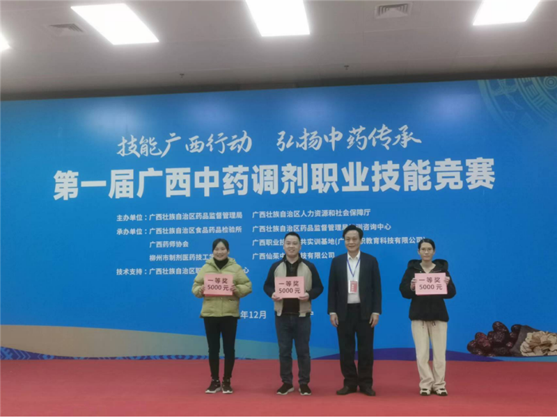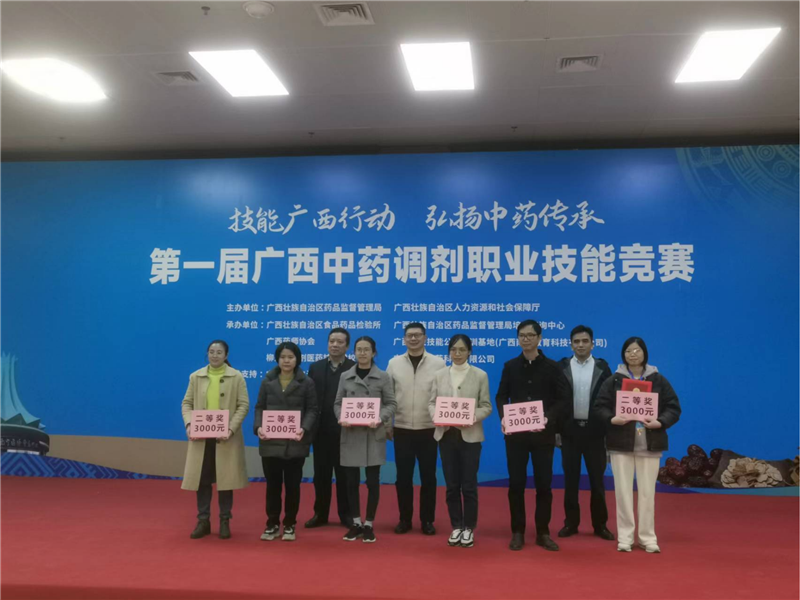 由自治区药品监督局与自治区人力资源和社会保障厅共同主办的第一届广西中药调剂职业技能竞赛,于12月15-17日在广西职业技能公共实训基地(南宁市武鸣区)举行。此次竞赛以“技能广西行动,弘扬中药传承”为主题,设置中药鉴别、中药调剂、用药指导、销售与服务等四大类的理论考试和技能操作项目。在为期3天的时间里,来自全区高等院校、职业学校、医院、药店、企业等医药行业的124名技能高手同台比拼、切磋技艺、展示职业风采。比赛分预赛、决赛两个阶段举行,一附院派出的三位选手在15、16日的预赛中战绩名列前茅,顺利晋级决赛。