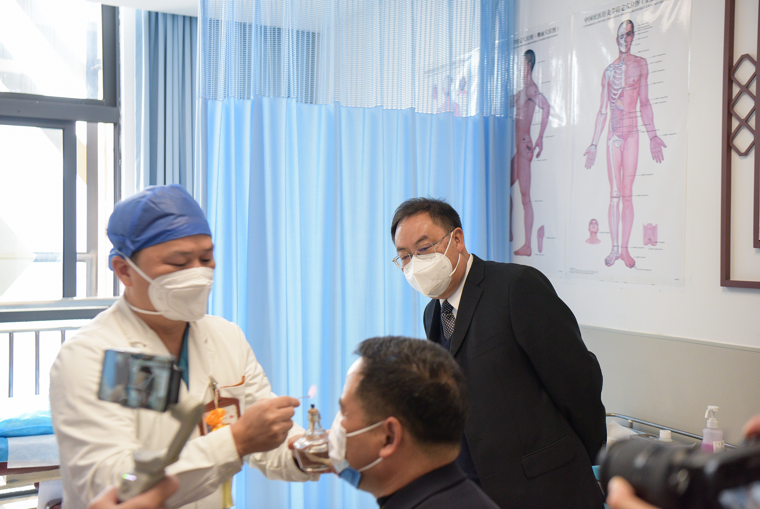 王毅观看壮医药线点灸疗法