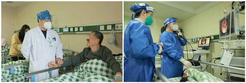 在一附院领导的大力支持下,仙葫院区呼吸内科及时成立,接受新冠病毒感染的救治工作,杨树栋临危受命负责仙葫院区呼吸内科工作。由于人员紧缺,作为科室负责人的杨树栋每天的工作就是——查房、会诊、门诊、气管镜检查。