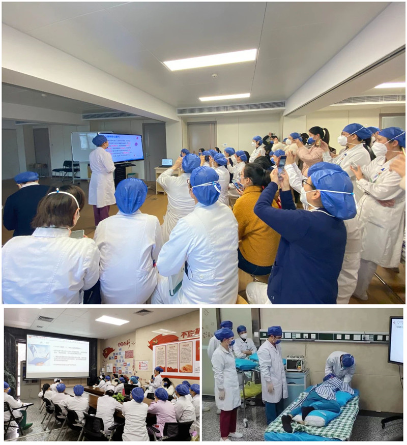 护理部按照一附院的统一部署应势而变,直面“非战斗性减员”与“工作量快速攀升”的双重矛盾,通过动态了解护士健康状况和在岗情况动态调配人力;根据各科室的转型救治任务统筹设施资源;不断优化流程、完善常规和质量标准等确保护理工作有明晰指引,多措并举有效应对新冠病毒感染患者就医的高峰期。为提高危重症患者的护理能力,及时制定护理培训方案,以线上线下相结合的形式开展理论培训、护理工作坊等,提高危重症应急处置和护理能力。针对收治重症患者剧增的状况,火速织起安全防护网,组建重症护理巡查小组每日对各科室进行巡查和指导,排除安全隐患、强化责任意识,全面保障护理安全和质量。