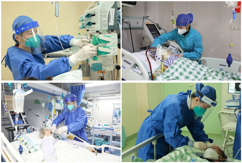 重症医学科、急诊科、呼吸与危重症医学科等科室护理人员奋战在新冠病毒感染重症患者救治最前线